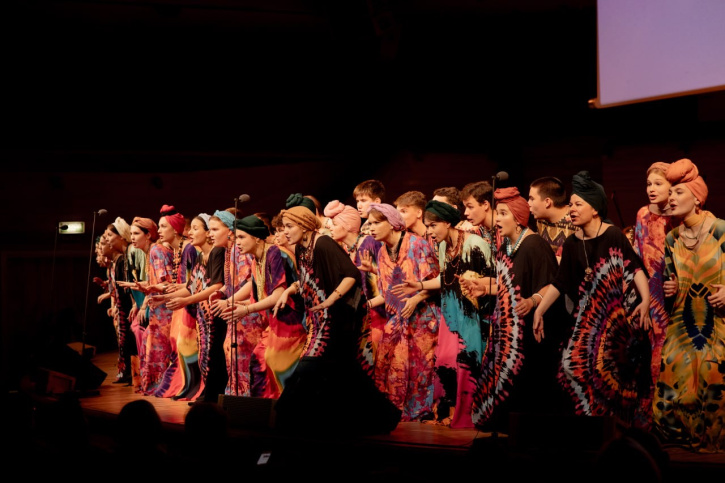 The ethnic climax of the first part was the performance of the Folk Choir of the Department of Folk Choral Singing (Artistic Director Yuri Kolesnik). The students performed songs from the Republic of South Africa — «The Lion Sleeps Tonight» from the repertoire of the ensemble Ladysmith Black Mambazo and «Sesivuma Sigiya» from the repertoire of the Drakensberg Boys Choir.