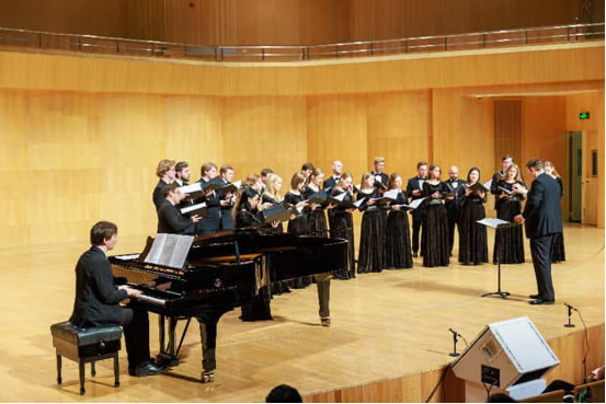The Gnesin ensemble of contemporary choral music, Altro Coro, under the direction of Aleksandr Ryzhinskii, performed on the stage of the China Conservatory of Music. At the first concert, the ensemble performed the Symphony of the Great Victory for choir and piano in an arrangement by Kuzma Bodrov (piano part — Alexei Vaker), as well as the choral cycles «Leningrad Notebook» by Alexander Flyarkovsky and «Four Choruses on Verses by Tvardovsky» by Rodion Shchedrin. On the second day, Altro Coro presented to the Chinese public works by Alexander Sveshnikov, Valery Gavrilin, Valery Kalistratov, and Alexei Larin. To conclude the musical evening, the choir of the China Conservatory joined the Russian ensemble on stage.